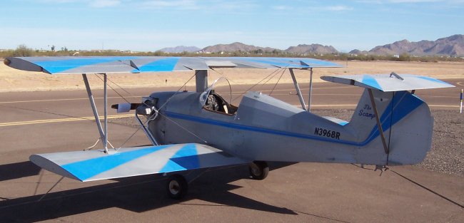 The Scamp, N3968R. Aerosport Scamp, built by Cecil Underwood, A/W date 1/12/84. Current (2010) registration to John McKinney, Sun Lakes, AZ.