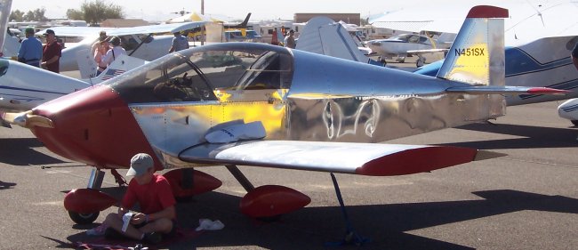 N451SX. 2200 Sonex, built by Steve Pettyjohn, Phoenix, AZ. Now (2010) registered to Dennis Huwe, Aguila, AZ. Steve recommended the bigger engine as the only thing he would change, mostly due to the hot/high conditions in AZ.