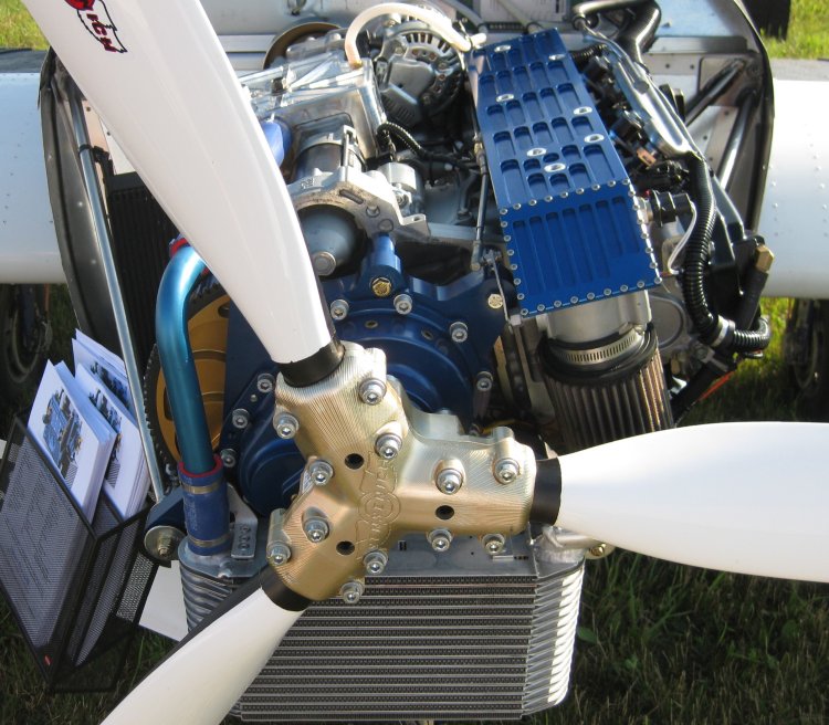 The Viking (Eggenfellner) / Honda Fit engine. New product. Not sure if there's more than this one flying. Nicely color coordinated and NC-milled, though.