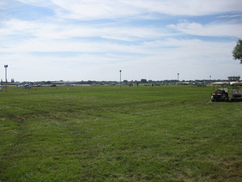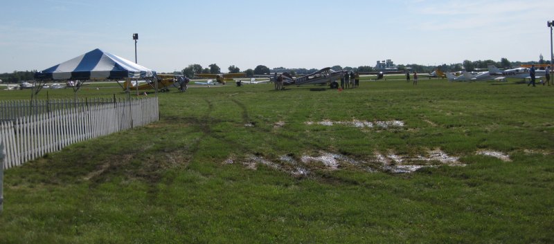Homebuilt parking, Monday, day one of the big show. Oh, don't mind that there aren't 200 airplanes in this photo. That's the soggy ground. Nowhere to park, airport still closed.
