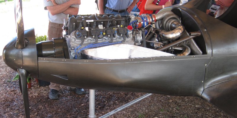 Ah, nothing like a prop-speed-reduced, twin-turbocharged automotive conversion with a new custom prop and pressurization system to ask for things to go wrong. In a big dollar kind of way, of course. Which reminds me - the guy's hand in the photo above is indicating that there is a huge radiator in the fuselage about where his hand is.