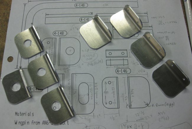 1/2 hr - scaled up the wing pin retention brackets. There is partial dimensioning on this drawing so I determined it was about 5% undersize and worked out the rest of the dimensions from there