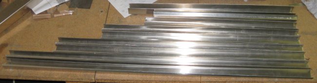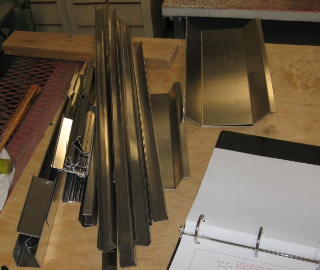 1 1/2 hr (of work) - bent all the remaining parts I could identify as needing to be bent. Got access to a 4-foot brake via a member of the local EAA chapter, and cranked them out. See below.