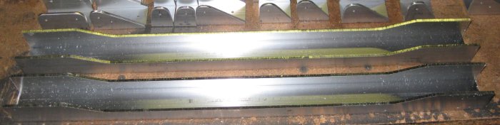 Firewall beams, after sanding, scotchbriting, marking, and drilling.