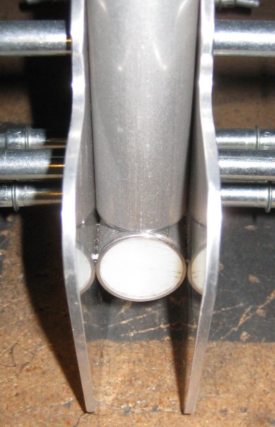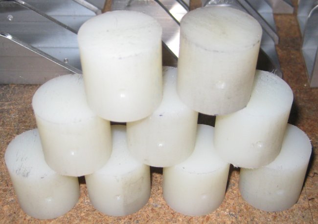 3/4 hr - mark, drill, cut to length, debur, and test fit nylon tube inserts. I had originally counted 8 of these at 1" long each, but there are 10. I had bought 1 foot, so I made 11. Now that I see where these go, I will look some more to see if more are needed. Definitely drill before cutting, that way the long piece can be held in the vise on the drill press for good on-center through holes.