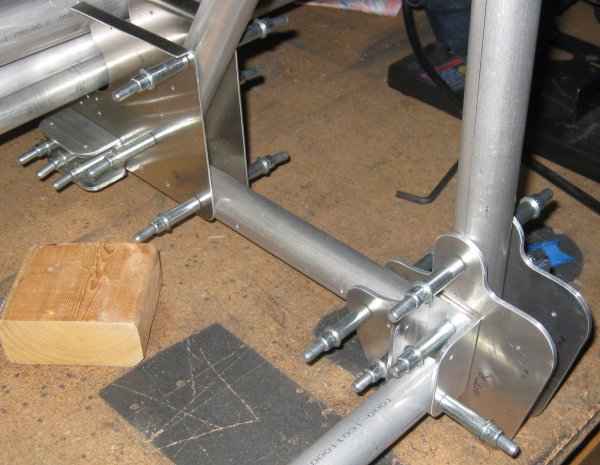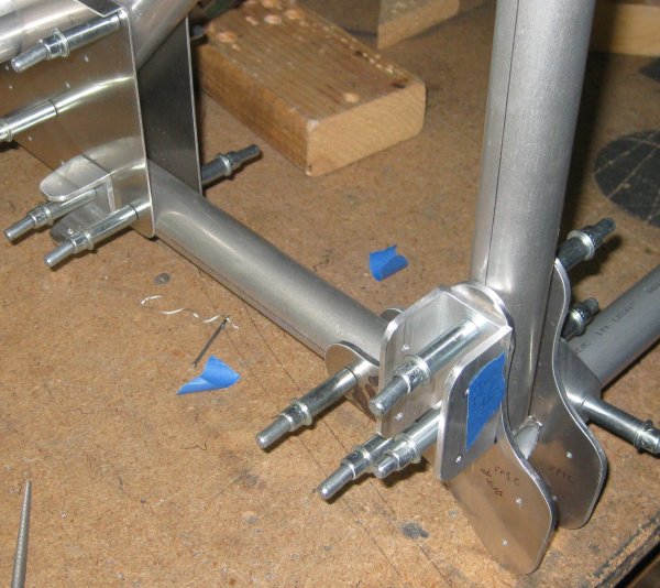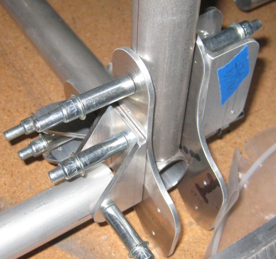 1 1/4 hr - located all of the brackets on the two main frames that I have standing up on the work bench. A LOT of these brackets go on this central structure. After getting them clecoed on, I rearranged the clecoes to allow for 4 more tubes to be clecoed onto the structure. Found one tube the registration of the holes from end to end was a little twisted.