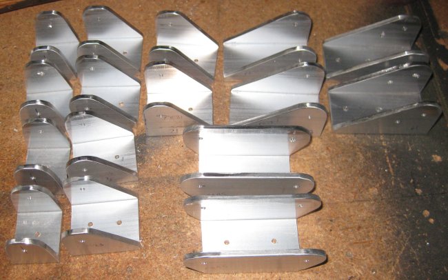 1/2 hr - Finished off these brackets with some final shaping, then the scotchbrite wheel. Marked for drilling and drilled.