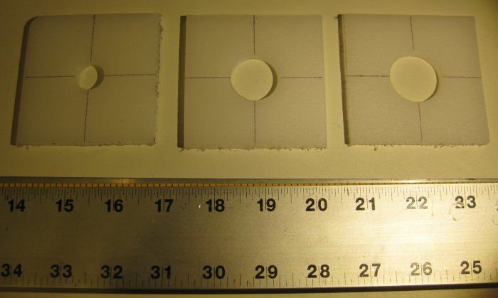 1/2 hr - made up .625, 1.0, 1.125 tube marking tools. Saw this in a welding book and made them from an inexpensive kitchen cutting board. Using (3 different) unibits to step up to the hole size, they fit snug on the tubes. Mark the plate with perpendicular lines first, then drill hole at intersection point.