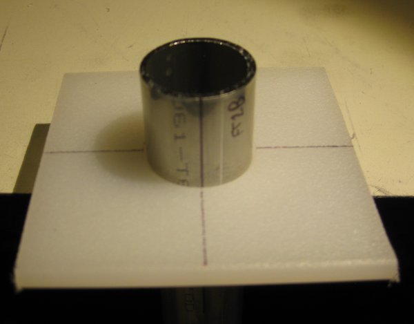 View of the setup for marking both ends of a tube so the holes are clocked the same.