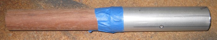 1/4 hr - record heat today. Over 100F in the garage at 8pm. Chamfered a couple more of the short tubes. Trick - only wrap about 1/2" of the dowel with tape, then slip the tube to be chamfered on from the un-taped end. That way any little burr from the holes in the tubes doesn't have to slip over the tape. Nearly got one stuck on the dowel because the burr was cutting into the tape when pulling the tube off. Need a new sanding disk for the disk sander.