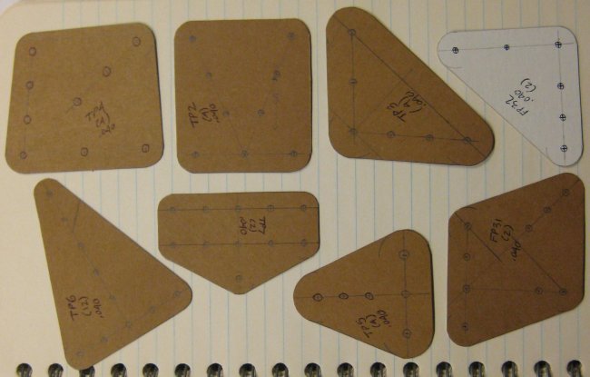 1/2 hr - made a few cardboard patterns for a couple of the .040 and .050 parts.