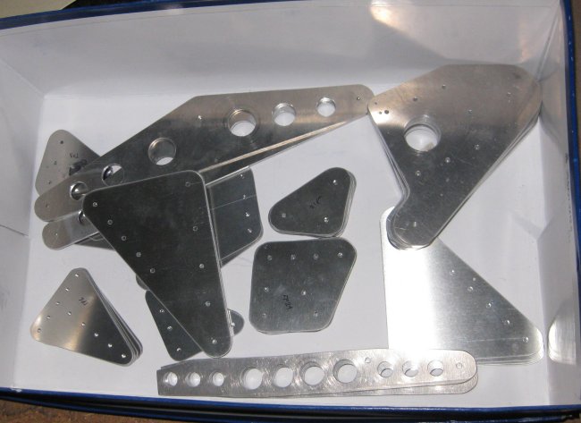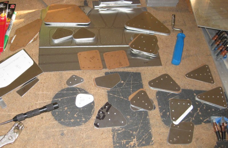 1/2 hr - marked and drilled a bunch of parts to use as pattern parts for drilling the rest later.