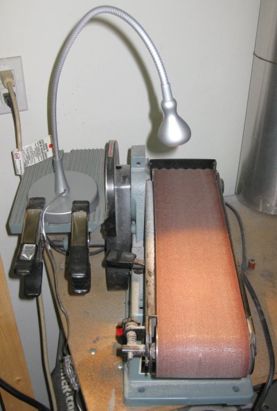Was up to Glendale for the big game, so on the way back, we stopped at Ikea. I got a Jansjo light to use as a work light in the garage, to replace a very old, taped-together, very hot halogen desk lamp I had been using. The Jansjo sits on the belt sander with a few spring clamps and is a cool LED, for only $10.