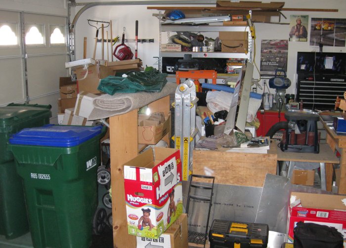 No work on airplane parts this weekend. Saturday was the big garage sale. Unlike last year where we brought the leftovers back inside with the thought of having another sale in a few weeks (never happened), we donated ALL of the leftovers to a couple of charities. This freed up enough room in the garage to allow for better stroller parking, but best of all, to re-join the two 3'x5' work tables into one 3'x10' table. The space where the unjoined 3x5 sat was then back-filled with an old dining room type table that I'd had at the hangar (but never really used there, so I brought it back home).
