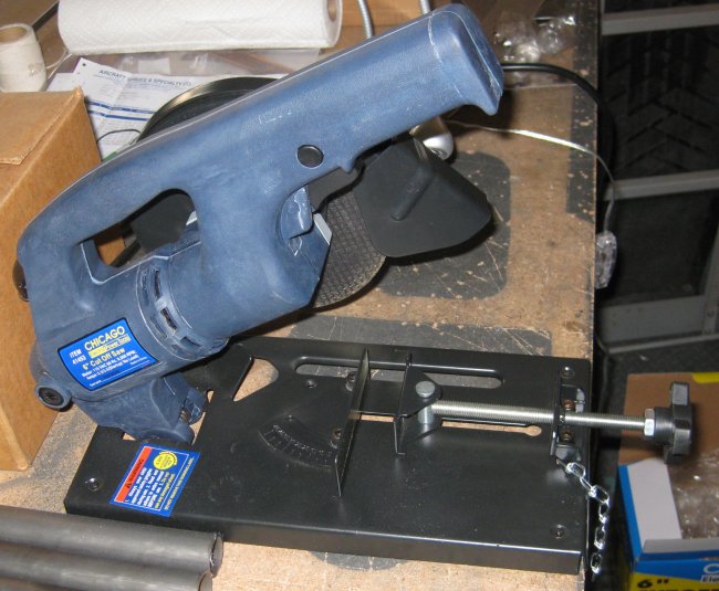 1 hr - after buying a 14" cutoff saw from HF, my yahoo home page starts displaying an ad for a 6" cutoff saw from HF. Spooky that ads are now SO well targeted, but I added it up, and with the 20% off coupon, the smaller saw would be $20 less. I also rechecked the parts list, and the largest/thickest steel is 1.0 x .125 wall. I had thought there was a piece of 1.5 dia in there, and the 6" saw has a 1" capacity. I would prefer to work with the smaller saw, I think, especially on the smaller diameter stock, so I returned the 14" and got the 6". Tonight's hour, though, was to set up the saw, measure and mark the 1.0 x .049 stock and cut a few parts. It took a little doing to get the cutoff wheel on the shaft such that it wasn't tilted on the shaft, but the reviews warned that installing the cutoff wheel could be a little involved. Other than that, it seems to work really well. Should be fairly quick to get the steel cut.