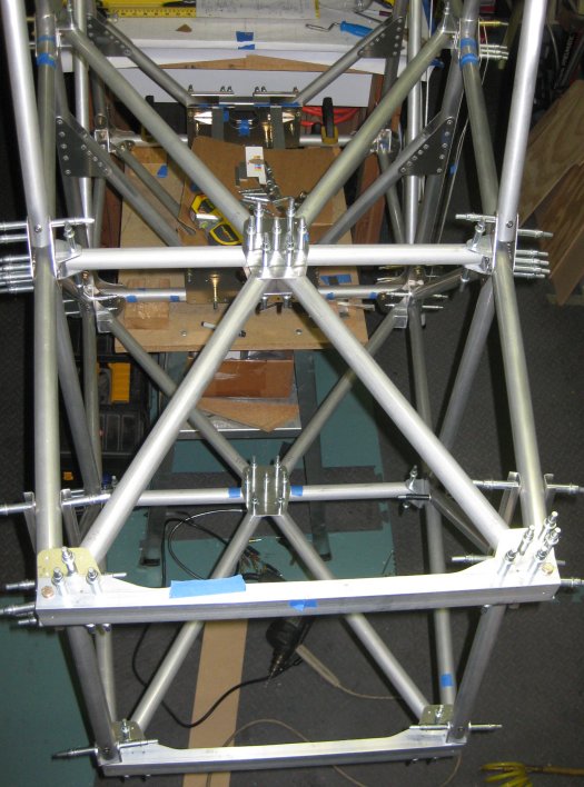 Upper X at least initially clecoed in place, forward triangle of the lower X going in.