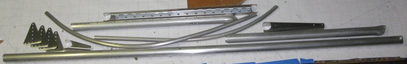 1/2 hr - Finish smoothing the 3 straps for the rudder. Collected the rudder parts together. Confirmed that I made only 1 of 2 of the top rib needed. The top rib starts as a U channel, not a tube. Made up a blank for another rib from some .025. Will need to use a brake longer than the one I have to bend it.