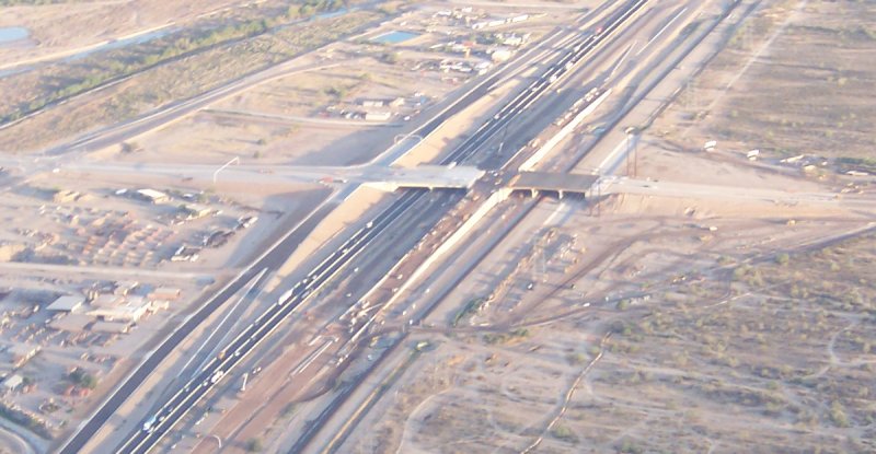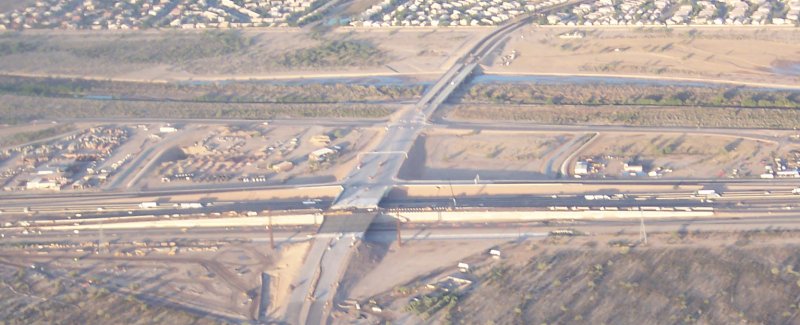 0.5 flight time, 1 ldg. Over to the I-10 project. They finally closed the westbound ramp walls and are filling in from the top. Then went over to the Ultralight Field to see what I could from over there. Calm wind, smooth air, few high clouds - nice! Didn't have the usual camera today, so used an older 3 Mp - so most were out of focus and grainy.