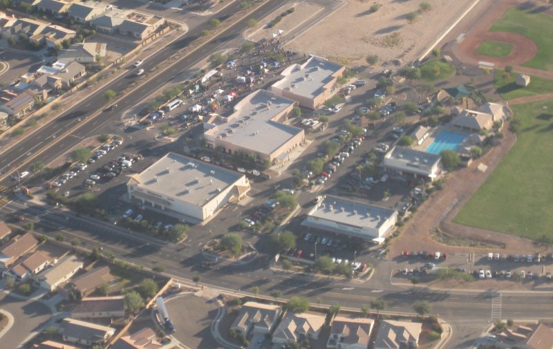 0.4 flight time, 3 ldg. Went over by the I-10 project - it's "open house" day where the public is riding bikes and walking the new bridge and intersection. Also took a few photos of the shopping center where the events are centered. Back to the pattern for 2 quick power off patterns, then 2 other planes were coming in, so the 3rd landing was a larger pattern. There is an aerobatics contest at the airport this weekend. They were getting ready, but had not started putting planes into the aerobatic box about 1 mile south of the airport yet.