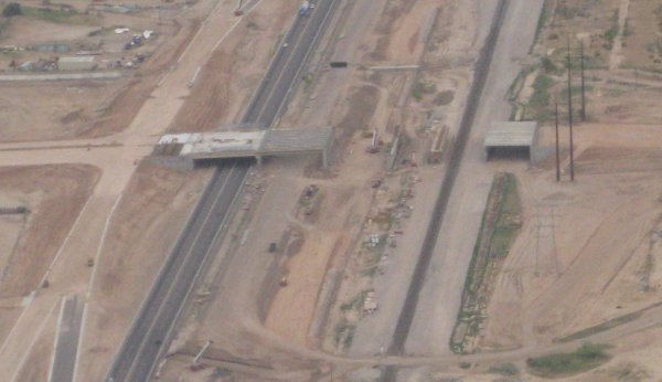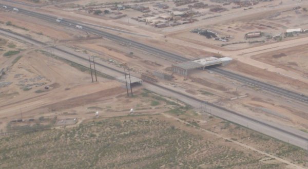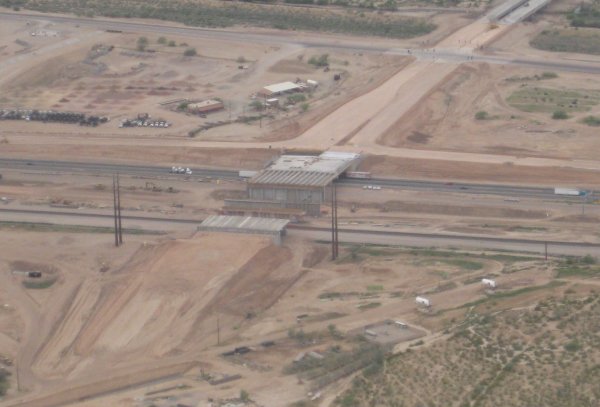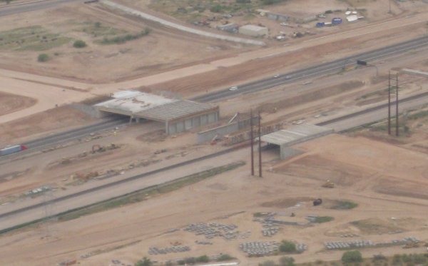 0.4, 3 ldg. Went out to the I-10 project for a look. Ramp on the east side is really getting built up. Returned to the pattern. Some sort of large round-engine plane doing high-speed low approaches when I got there. Looked like maybe a Russian plane? Kind of like a T-6. Did 2 normal, 1 power off approach. I may be messing up my normal approach with these power offs. All running nice, almost no wind at the surface. A bit bumpy through 3k, ~15mph wind above.