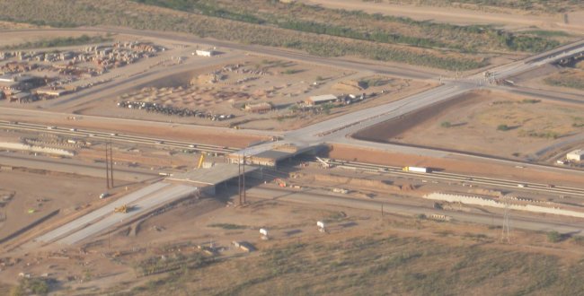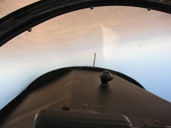 0.6 flight time, 1 ldg. Over to the I-10 project for an update, then out west to try photos during rolls. Did 3 rolls to the left. After the first one, smelled some sort of smoke. It did not continue. After return, determined the prop had contacted the cowling. I have below minimum recommended clearance there, and will sand down the cowling some to improve this clearance. While waiting to meet Marv, I started to install the flap gap seals. Got part way done, but had forgot my drill and borrowed Tim's drill. Will need to take the flap loose from the pushrod to get to the most forward two holes. Then gave Marv a tour of the plane. He built a Factory Five Cobra, and knows Bud Keil (another Cobra builder who I took for a ride). He had not seen a Sonex other than in photos, just got his PP ASEL, and is buying a C-150 this week to have something to fly. He seemed to think the Sonex would meet what he is looking for. I'll see if I can arrange a ride for him later, but I didn't have a 2nd headset today and had already done my flight earlier.