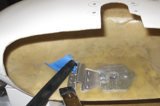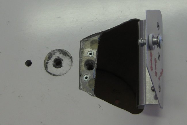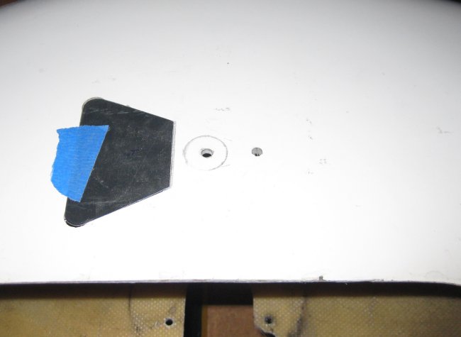 Finished off the RH wheel pant access door. The 1" dia. hole with press-in cover plate that everyone else uses would be MUCH easier, but I just had this idea that I need to get a finger or two in there to align the valve extender with the valve, since the tubes I have seem to put the valve tight against the rim. This valve position isn't easy to just attach the extension.