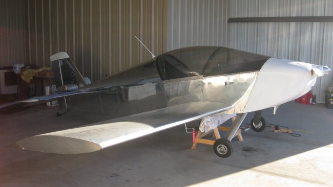 Jacked plane on the sawhorse. 4 gallons of water on the tail held it down lightly, so I added a 40 lb ballast bag on the other side of the tail to really stick it down. Flipped tires on the rims. 129 landings from this first half of these tires. Finally got one tube to seat with the valve in exactly the right place - I think these tubes are really meant for narrower rims. Looking at it this time, I considered relieving the valve notch in the rim to let it sit a little more off-center, but this would leave unsupported tube on the other side, which might not be a good idea. Added the wheel pants. Noticed the LH gear leg fairing bracket is cracking where it attaches to the fuselage - this is a little bracket I added to hold the fairing in position - not per the plans. Might be flexing due to bending on landing, but I think it's being loaded by the rivets for the nutplate (not countersunk heads). Will need to replace this bracket at some point. Took plane off the jack. Quite windy today.