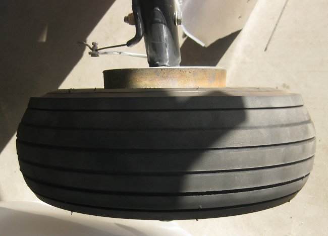 RH tire, post-flip. Worn tread is on the brake side now, new tread outboard for more landings.