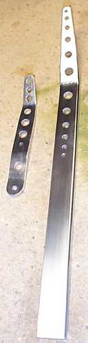 Plate details. Getting a ScotchBrite wheel for the bench grinder is the way to get the cut edges very smooth. I did not use the bench grinder at all until adding the ScotchBrite wheel. ~$40 from Avery. I think I'm using the finer-grained one. 9/9/00