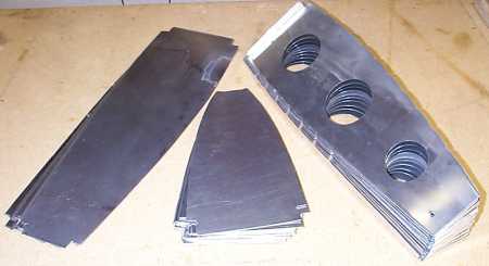 Just enough scrap was available (including recycling the remnants of a faulty aileron) to produce a complete set of (52) wing ribs. 10 afts are formed, the rest are still "blank". 9/9/00