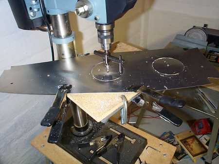 Cutting hole. Be very careful to avoid the flying part of the fly cutter. 9/25/00