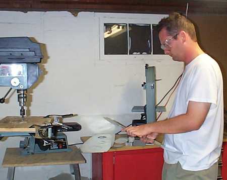 Removing cutout from hole. Edges extremely sharp at this point. 9/25/00