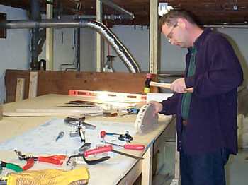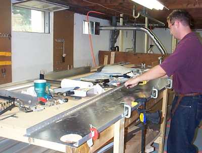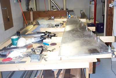 Drilling both sides at once (clecoed together). Saves time measuring & laying out both separately. 9/29/99