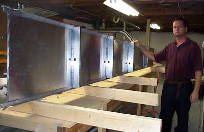 How to form 95deg. angle in 2x2x1/8 angle. Adjusted quite a few part angles this way - set on floor, hit, check. 10/2/99
