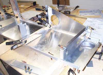 Aft fuselage box. Yes, I ended up with a not-so-perfect looking sheet on the right side. I will have to polish that out. You can see a small polished square near the forward edge of the sheet ~6" down from the top. 10/10/99