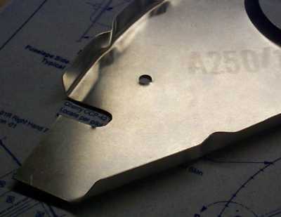 Set up to drill center channel. I reversed the C-section of the center channel because I cut the ends opposite to the print. Rather than scrap the center channel, I remade the 2 end clips opposite to print. 10/12/99