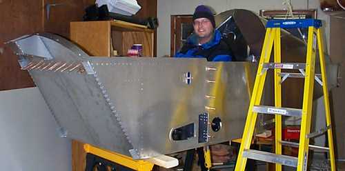 Seated on the left side. There was another inch or two to move over, but elbow room in the center is tight. (I'm 6'-1", and wearing 6 layers of clothes!) Tomorrow marks exactly 5 months' work on the Sonex - somewhere around 425 hours (that includes the complete tail, all the wing ribs & the fuselage). 12/26/99