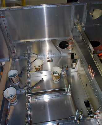 Used a regular rivet in the lower outer corner of the forward spar box - should not interfere with the spar, and I could not get the countersink into that corner anyway. 12/21/99