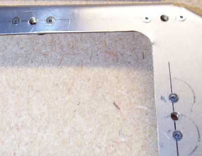 Showing countersunk rivets for nutplates. The circular marks around the lower right c-sunk rivets are from the microstop. These should clean up, but I want to paint it all black anyway. 12/5/99