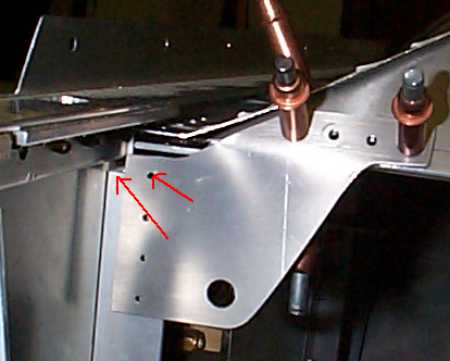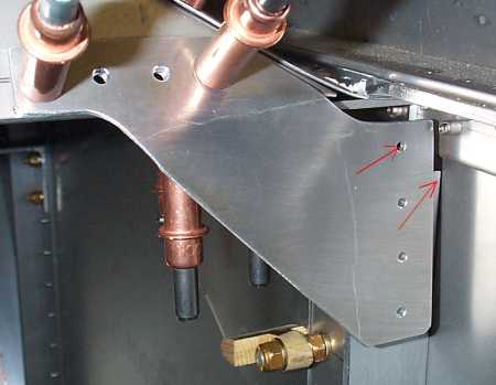 Detail of right side panel corner bracket. Arrows show top of F14-08 & rivet hole that won't attach to anything. This was noted some time back in the digest (#172?). I missed the note. The F14 print may have been revised by now. You would know because the F14-08 should be about an inch longer than the aft wing attach angle (F14-09?). 1/17/00