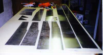 Why you don't want to make your parts look like what I picture here - I cut the W11-08's wrong. This is probably the only time in the whole project where I will cut something wrong too large - correctly trimmed W11-08 in foreground. 2/26/00