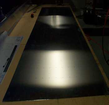 After consulting the mailing list & talking it over with Jeremy, I concluded that I would start my drilling-accuracy test - the wing skin. 1 of 6. I thought I had sliced all of these out of my stock near the beginning of the project (to set aside the material), but found that I had only roughed out 4 of the 6. So when I got to final trimming & drilling, it is inevitable that I only had enough sheet to do 1 of the 2 remaining, and will have to buy another sheet for the last skin. - posted 4/4/00