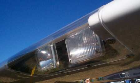Another RV installation. This builder eliminated the upper screws with a riveted "Z" of metal that the light cover slips into (on the upper edge). I don't know if this makes the lower screws easier or more difficult to install. 4/11/00.