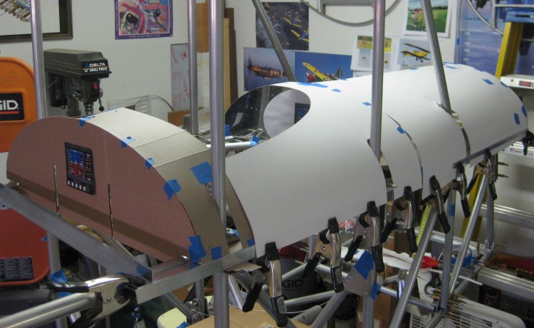 This doesn't look like progress, but it's a major shop clean-up and re-arrangement, plus the entire forward fuselage is drilled to final size and deburred.