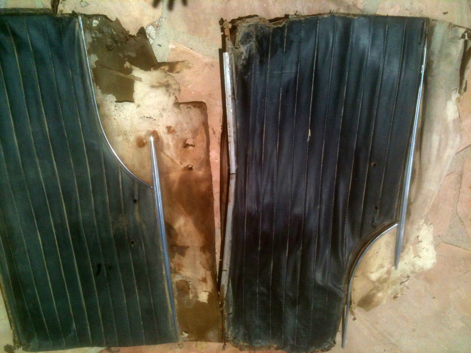 The interior roof of the 76R is something special. They didn't do this interior roof in any other model. AND ALL OF IT WAS MISSING. So chalk that up to yet something else I didn't know to look for. It features chrome trim above the windows (and inside the rear window), and these parts are mostly common with the 2-door hardtop Super for '51 and '52. I found a guy parting a '52 Super 2DHT on eBay. So I bought all those chromed parts. However, the 76R has chrome trim parts above the windshield that the Super doesn't have. I hope these are common with Cadillac, because I found someone parting a 2DHT Cadillac and I won the auction for those parts. The 76R also features the sun visors same as the convertible - supremely rare parts. But of all the stuff missing, those are with the car!