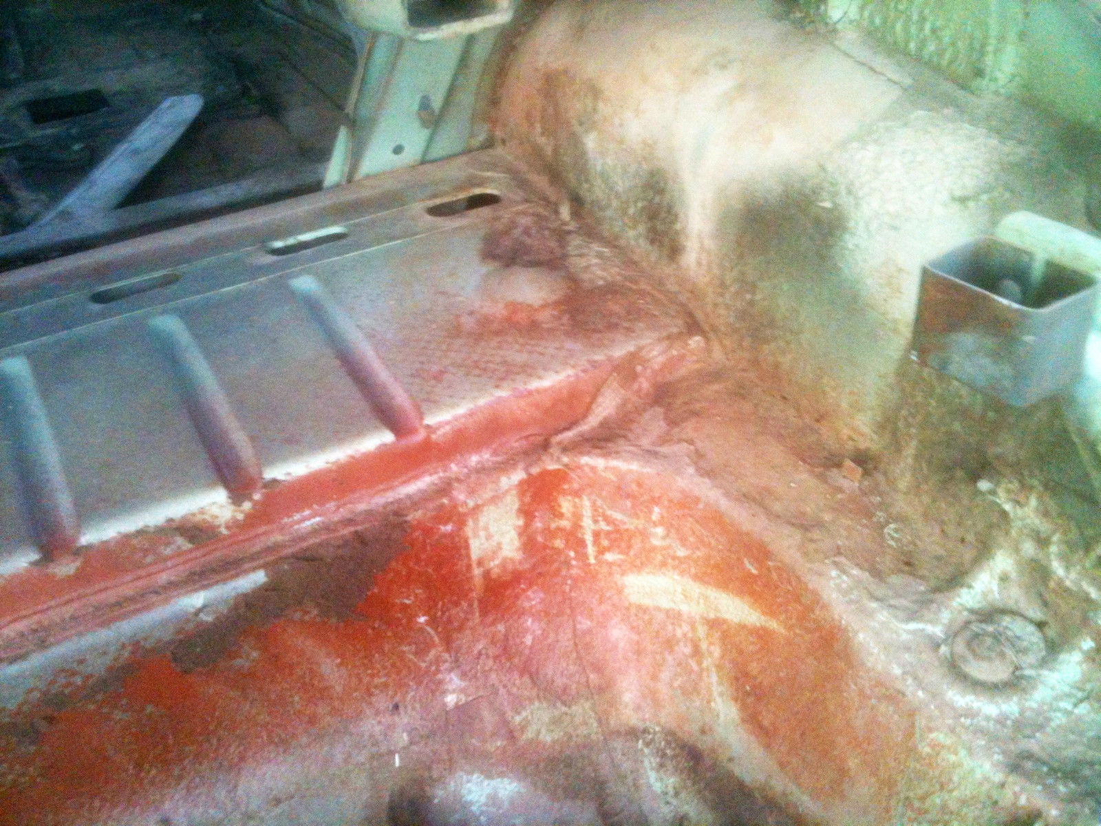 I planned to paint the body in the original greens. I provided a photo at the end of an identical Buick Roadmaster 76R in the same colors. A body man would find this an easy car to do. And there is no structural repair or replacement required anywhere in the floor, frame or body - just paint!