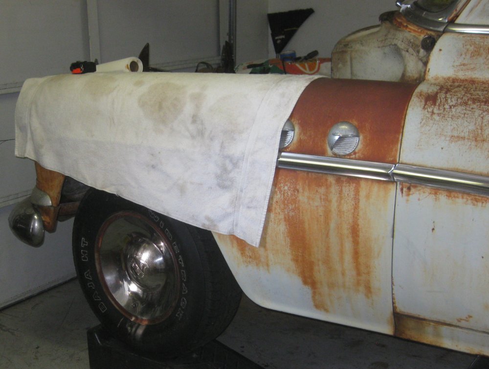 To learn about restoring an old car. To learn techniques, tools, technologies, methods, materials, suppliers, sources, processes for restoring an old car. To have a cool old car to drive. For this car - get it running. Get it driving (safe brakes, reliable engine, stays cool, lights, fans, heat works). Style? Painted steel wheels. It has the nearly-full-coverage hubcaps. I actually may prefer the dog-dish caps w/ Buick script + chrome trim rings - shows a little more color of the wheel itself. 760-15 Bias-ply wide whitewall tires. Original ride height. Want the engine area in pretty nice condition. Eventually replace the floors & upholstery. Farther out than that - complete the body work, bring in new paint. Replace the glass (though back window 3-piece glass looks really good - do the sides & front windshield). In doing this, spring for the complete rubber kit from Kanter (~$2k) rather than cringe with how expensive each last little bit of rubber is, just buy the whole car's worth at once. Color? I was thinking of a '55 tri-color scheme - the black roof, cherokee red, and that beige/tan below the sweep spear, but with a white roof in deference to the climate around here. The '51 colors are pretty dark and not all that exciting that I can tell. I may look into more '54 or '56 color schemes as well, since it seems that by then, the color selections were really expanding.