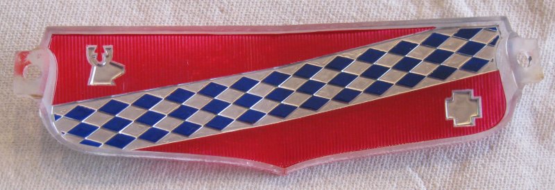 I have seen these advertised as new reproduction for $94 each. So I figured, for $0 additional cost (I already have the paints), I'd try adding some color back to the hood emblem.