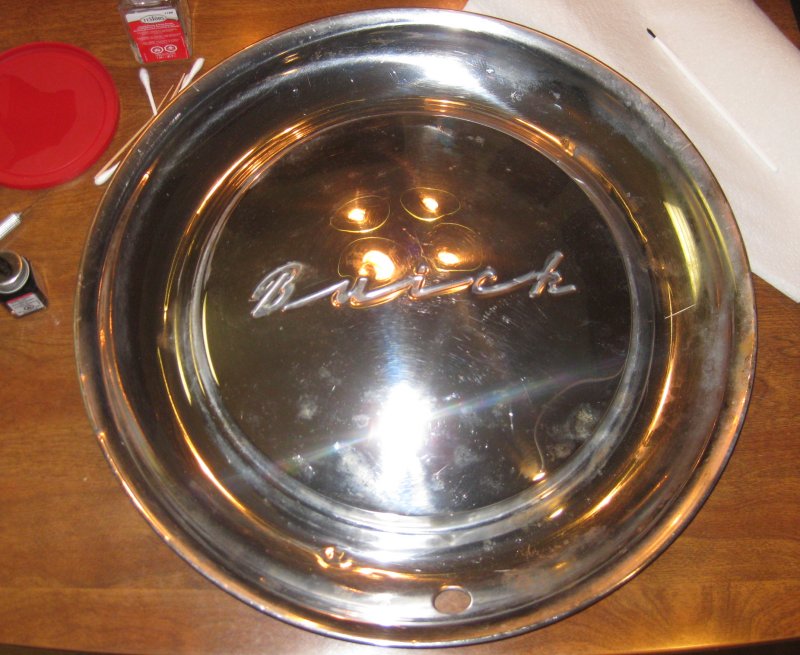 Also repainted the Buick script on one of the '51 hubcaps that came with the car. This might go for the spare tire. Still need to polish it up some with the metal polish. This was the best hubcap that came with the car.