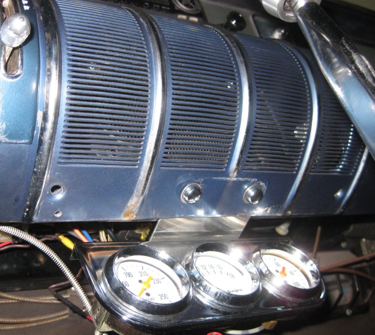 View from so far under nobody's really going to see the extra holes in the speaker grille or that the gauges are set back on a small bracket.